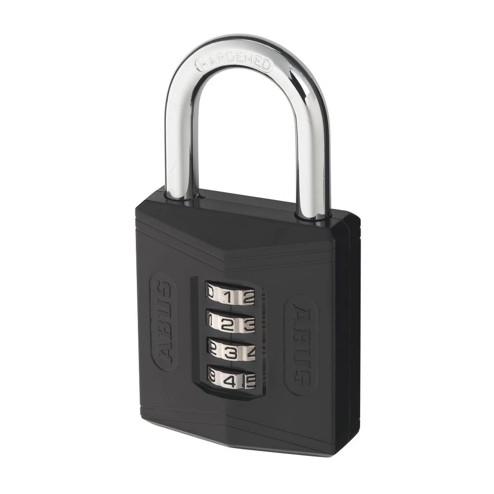 Hængelås med 4 cifret kode. Koden indstilles individuelt. ABUS sikkerhedslevel 5.