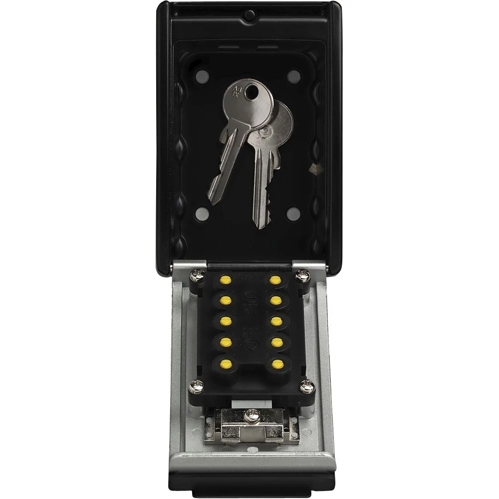 Nøgleboks med tastatur til vægmontering i solidt metal. Åbnes med fire cifret individuel kode efter eget valg.