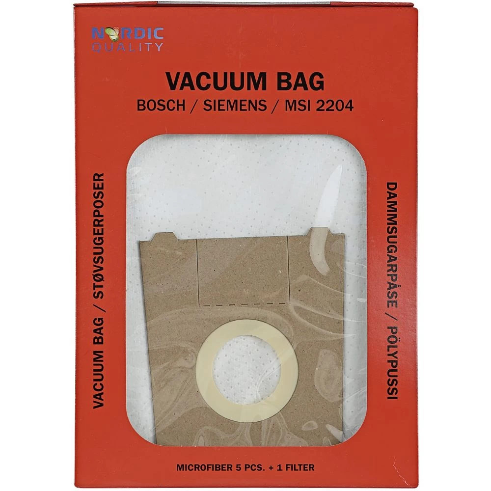 Støvsugerpose MSI 2204 Pakke a 5 stk. + 1 Filter Materiale: microfiber Følgende modeller er kompatible med produktet: