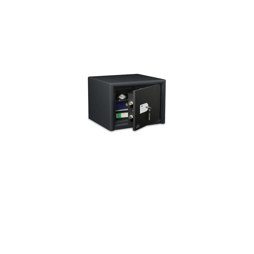 Europæisk godkendelse efter EN 14450 i klasse S2 for tyveri og EN 15659 LFS 30P for brand. Værdiskab med dobbeltvægget kabinet og brandsikringsmateriale i henhold til DIN 4102-A1. Låsning med 25mm rundbolte. Ekstra låserigle i toppen af døren. Forankringsmulighed i bagvæg og gulv. Plads til liggende A4 ringbind. Justerbar hylde. Europæisk godkendelse efter EN 14450 i klasse S2 for tyveri og EN 15659 LFS 30P for brand.