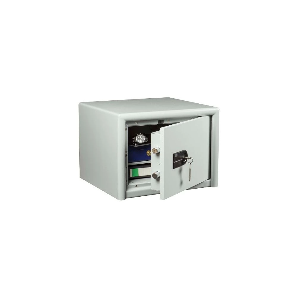 Europæisk godkendelse efter EN 14450 i klasse S2 for tyveri og EN 15659 LFS 30P for brand. Værdiskab med dobbeltvægget kabinet og brandsikringsmateriale i henhold til DIN 4102-A1. Låsning med 25mm rundbolte. Ekstra låserigle i toppen af døren. Forankringsmulighed i bagvæg og gulv. Plads til liggende A4 ringbind. Justerbar hylde. Europæisk godkendelse efter EN 14450 i klasse S2 for tyveri og EN 15659 LFS 30P for brand. Fås med nøgle, elektronisk kodelås eller elektronisk kodelås med fingerscan