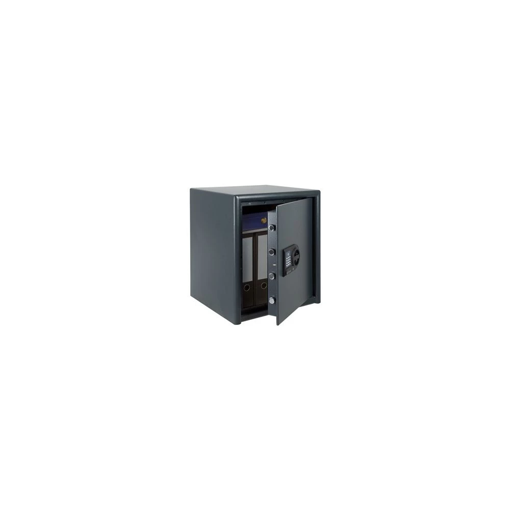 Værdiskab med dobbeltvægget kabinet og dør. Fås med nøgle og elektronisk kodelås.