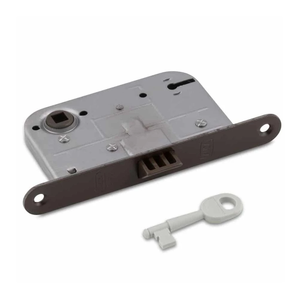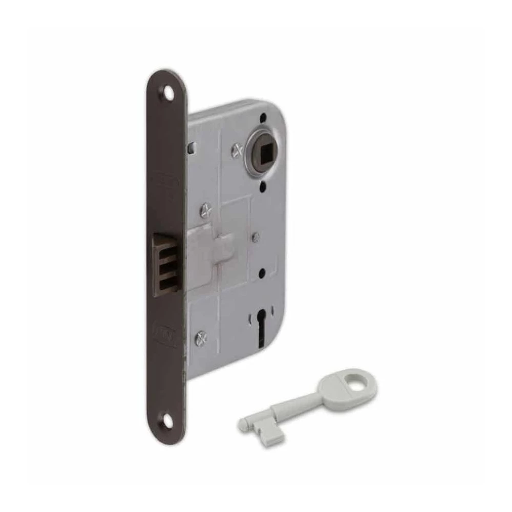 Rex låsekasse. Rund stolpe. CC mål er 72 mm. Inkl. slutblik og nøgle.