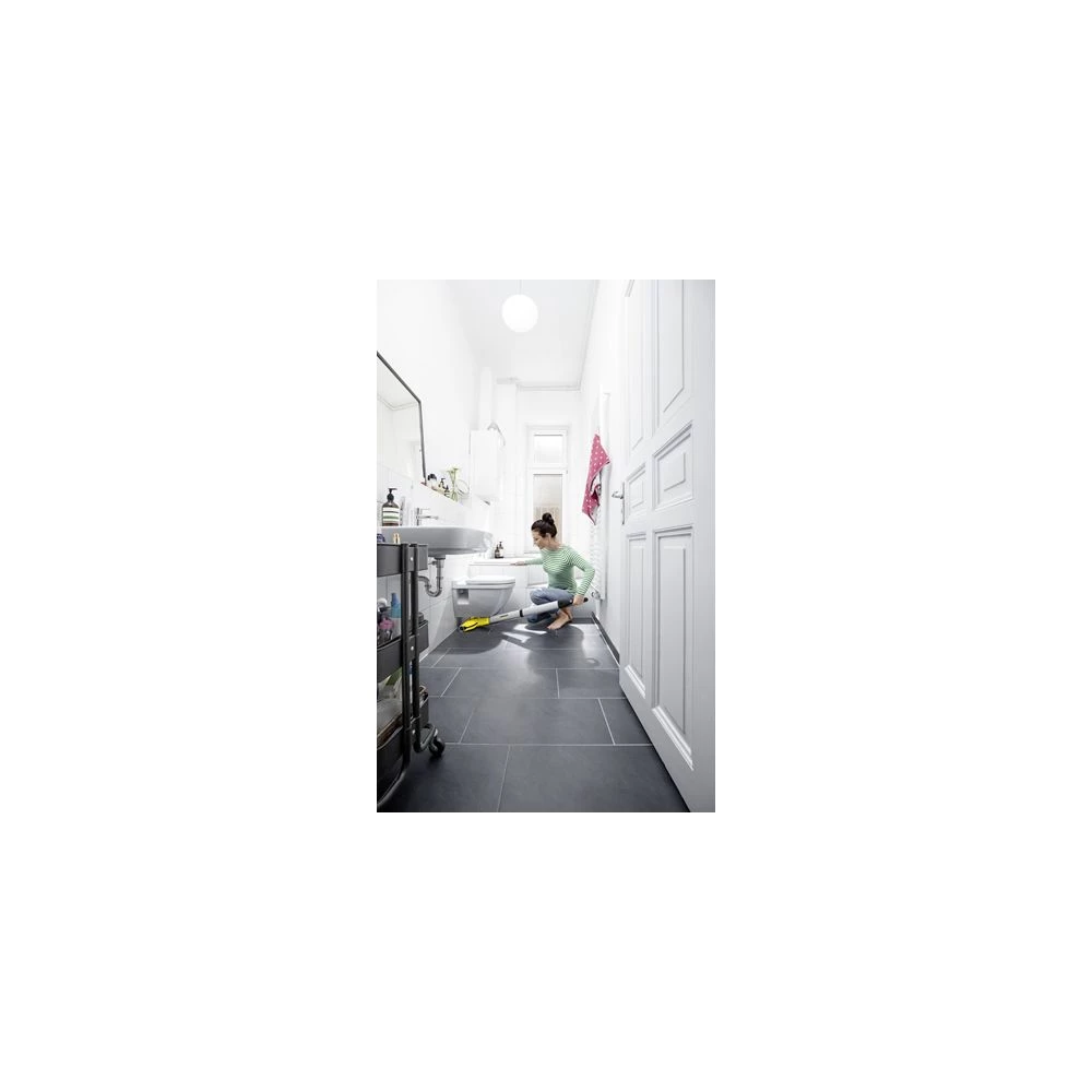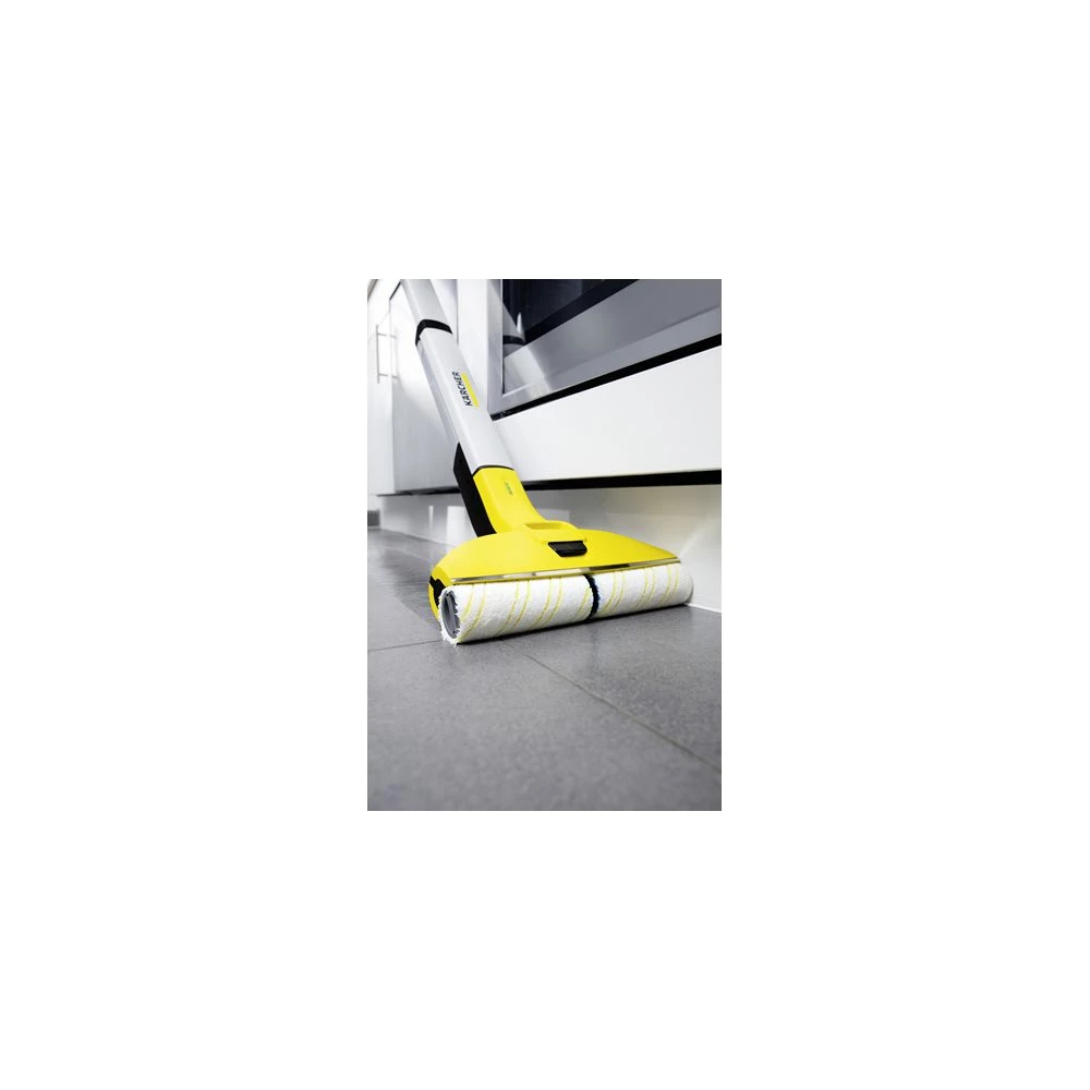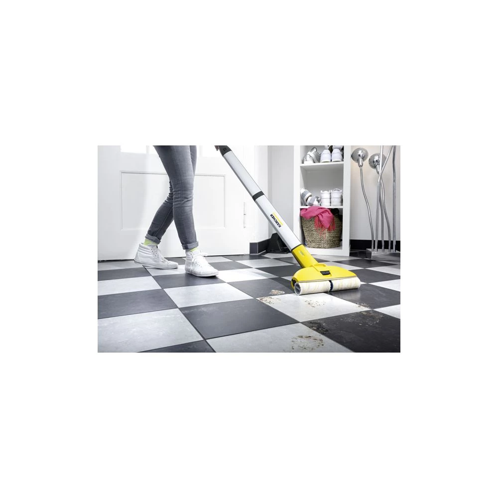 Med den nye FC 3 batteridrevne gulvvasker får du rent gulv uden besvær! De roterende mikrofiberruller fugtes med rent sæbevand mens det beskidte vand opsamles i en separat beholder. Gulvet bliver op til 20% renere end ved vask med traditionel moppe og spand. Det strømlinede design gør det nemt at komme helt ud til kanten og ind under møblerne – også fylder den ikke meget i kosteskabet. Den bruger kun 360 ml vand til rengøring af ca 60 m2 gulv og gulvet er tørt igen på under 2 min. Det gør den velegnet til skånsom vask af alle typer gulve som f.eks. parketgulve. Det kraftige batteri giver maksimal bevægelsesfrihed og 20 minutters brugstid. LED indikator viser hvor meget strøm der er tilbage på batteriet.