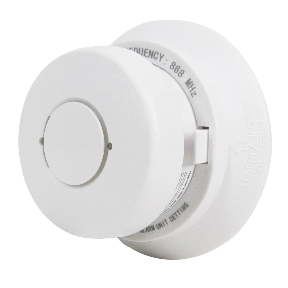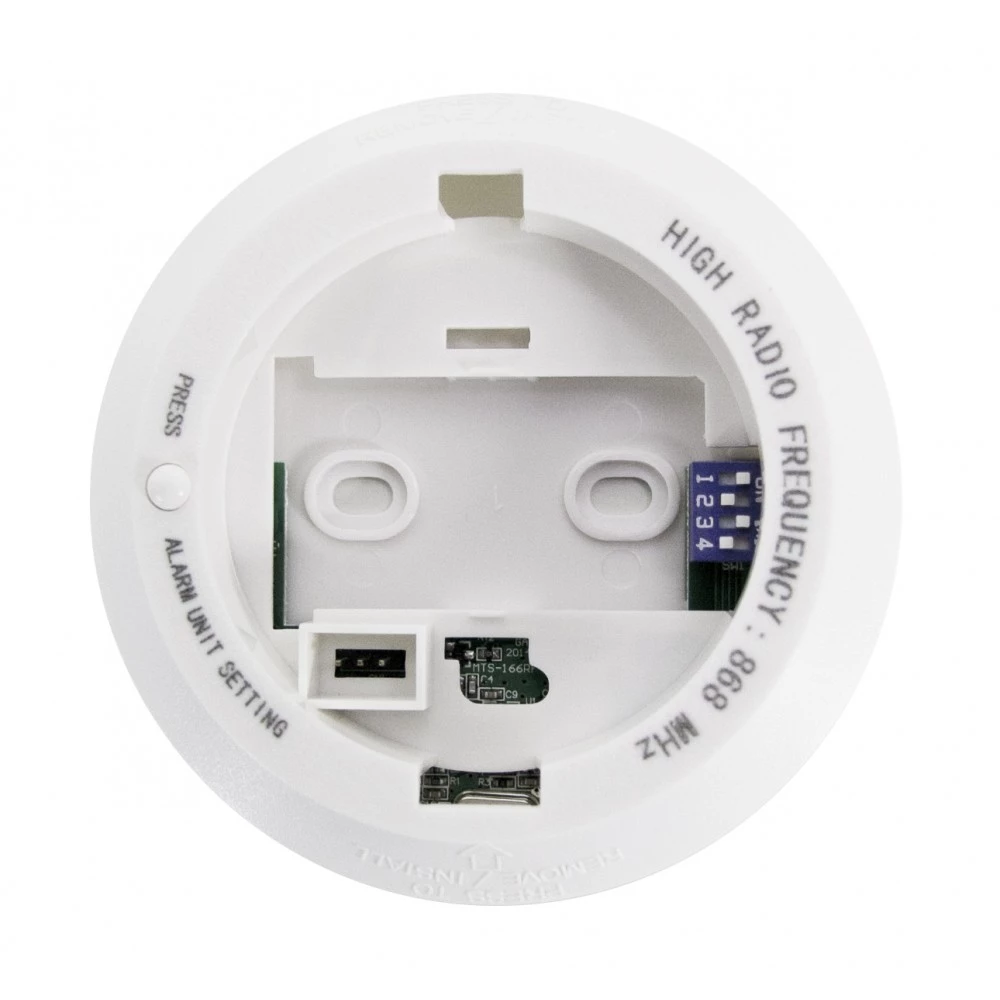 Lille kompakt trådløs røgalarm med ny frekvens og større sikkerhed som aktiverer alle øvrige røgalarmer i systemmet. Individuel kodning som holder ved batteriskift.