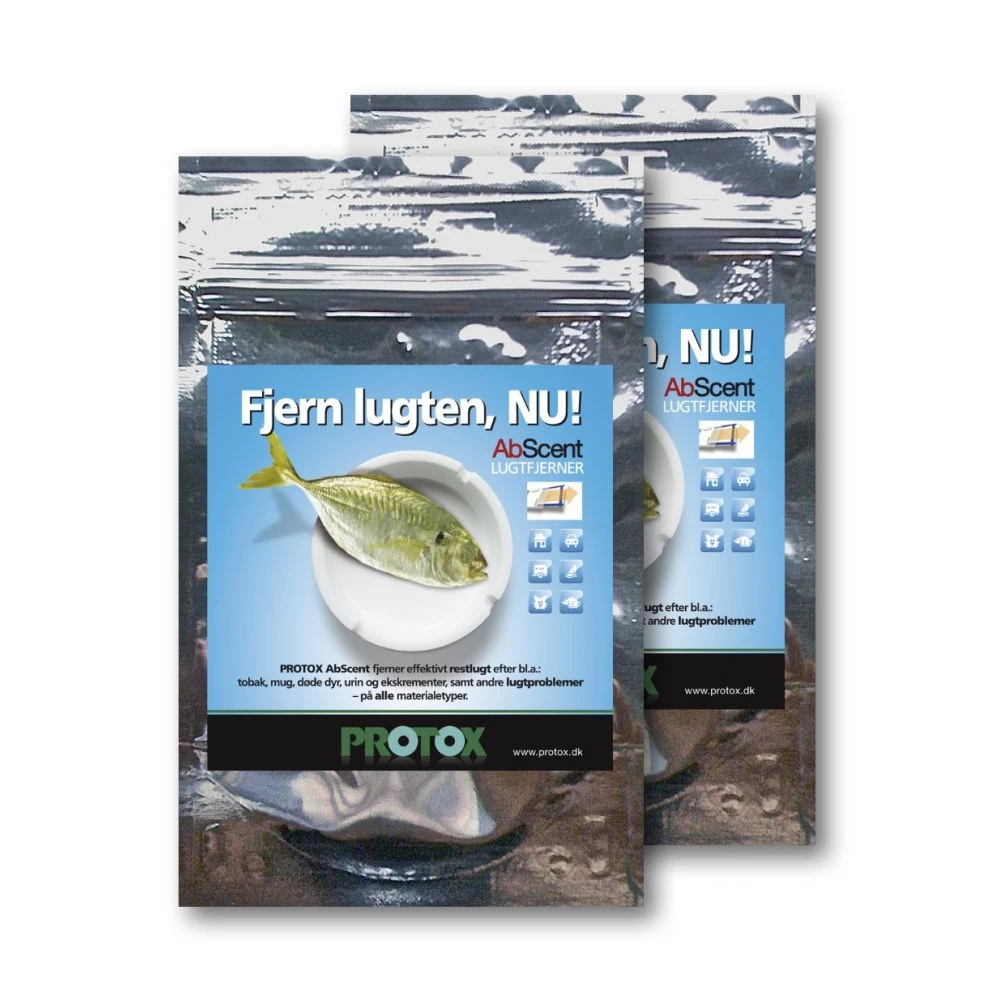 AbScent Lugtfjerner leveres i en forseglet alufoliepose.