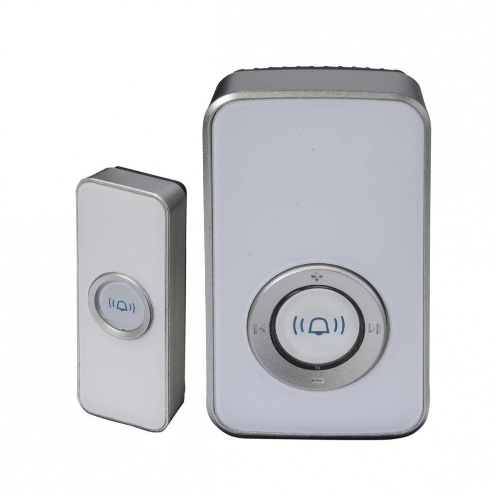 Trend dørklokke “design” – hvid – 230 V plug in – med dørtryk (IP 44) med batteri.