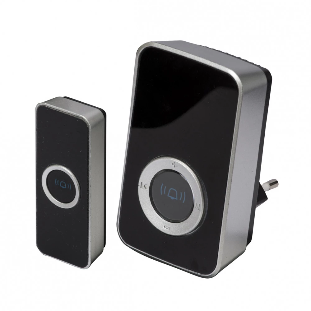 Trend dørklokke “design” – sort – 230 V plug in – med dørtryk (IP 44) med batteri.