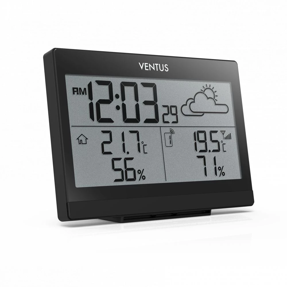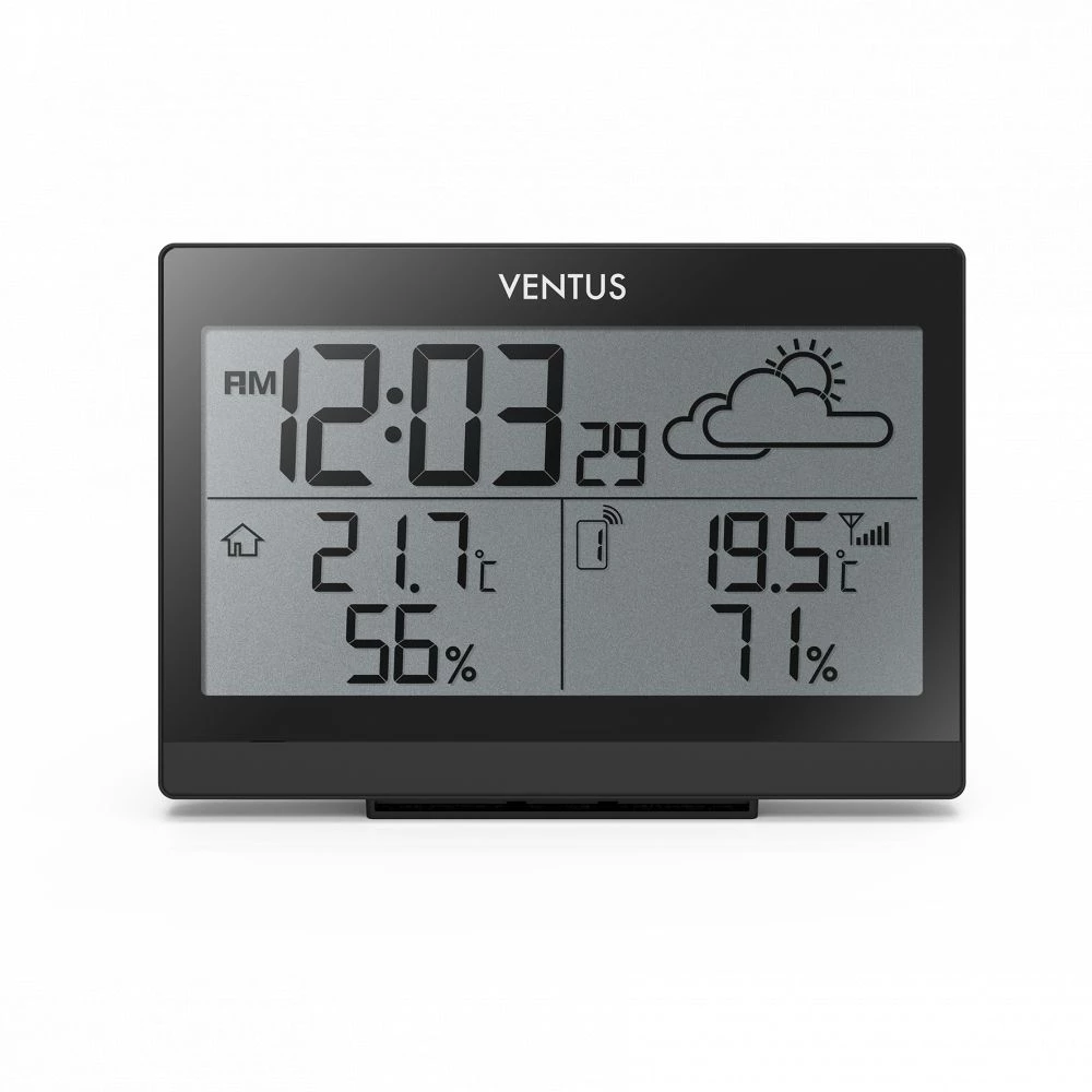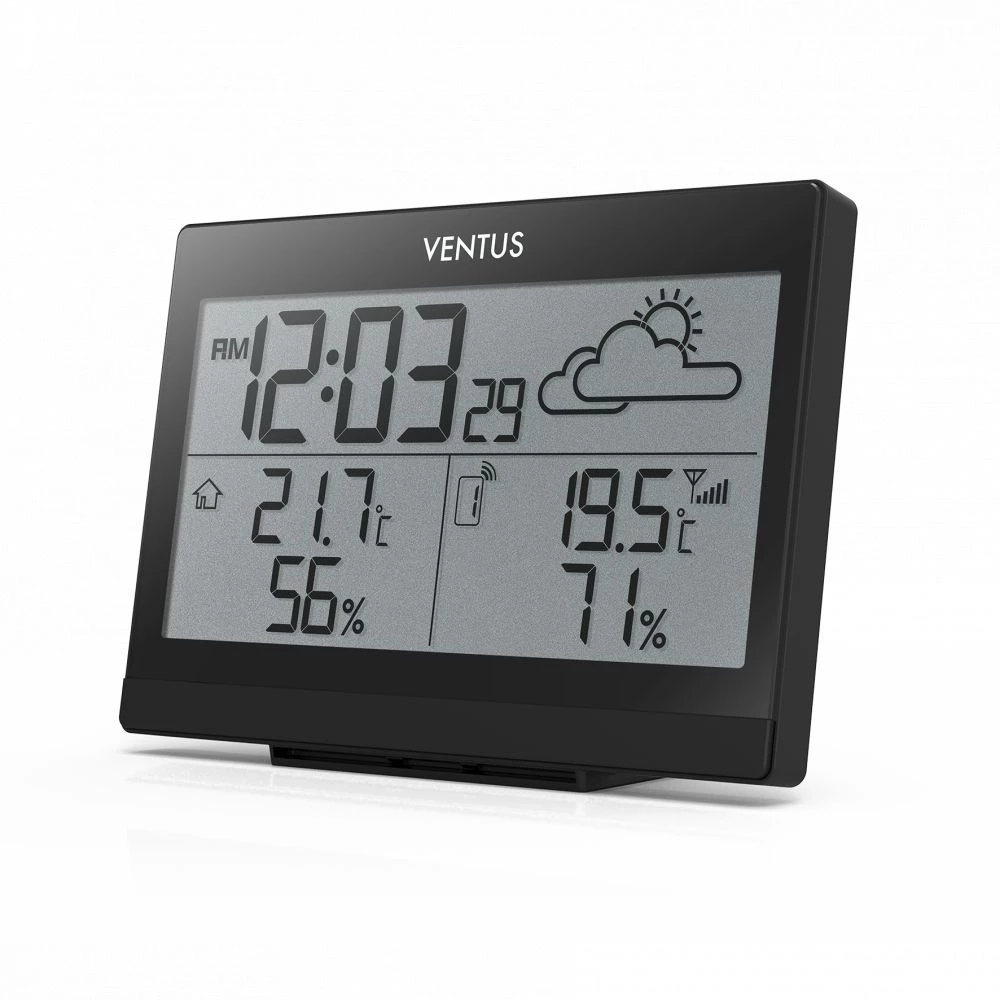 Elegant VENTUS Vejrstation i stilrent design med stort tydeligt display. W220 giver dig en lokal vejrudsigt og vejrmålinger fra terrassen, haven eller altanen. Alt sammen overført fra din/dine trådløse sensorer. Vejrstationen giver dig lokale målinger på inde/udendørs temperatur og luftfugtighed, samt min/max informationer på temperatur og luftfugtighed.
