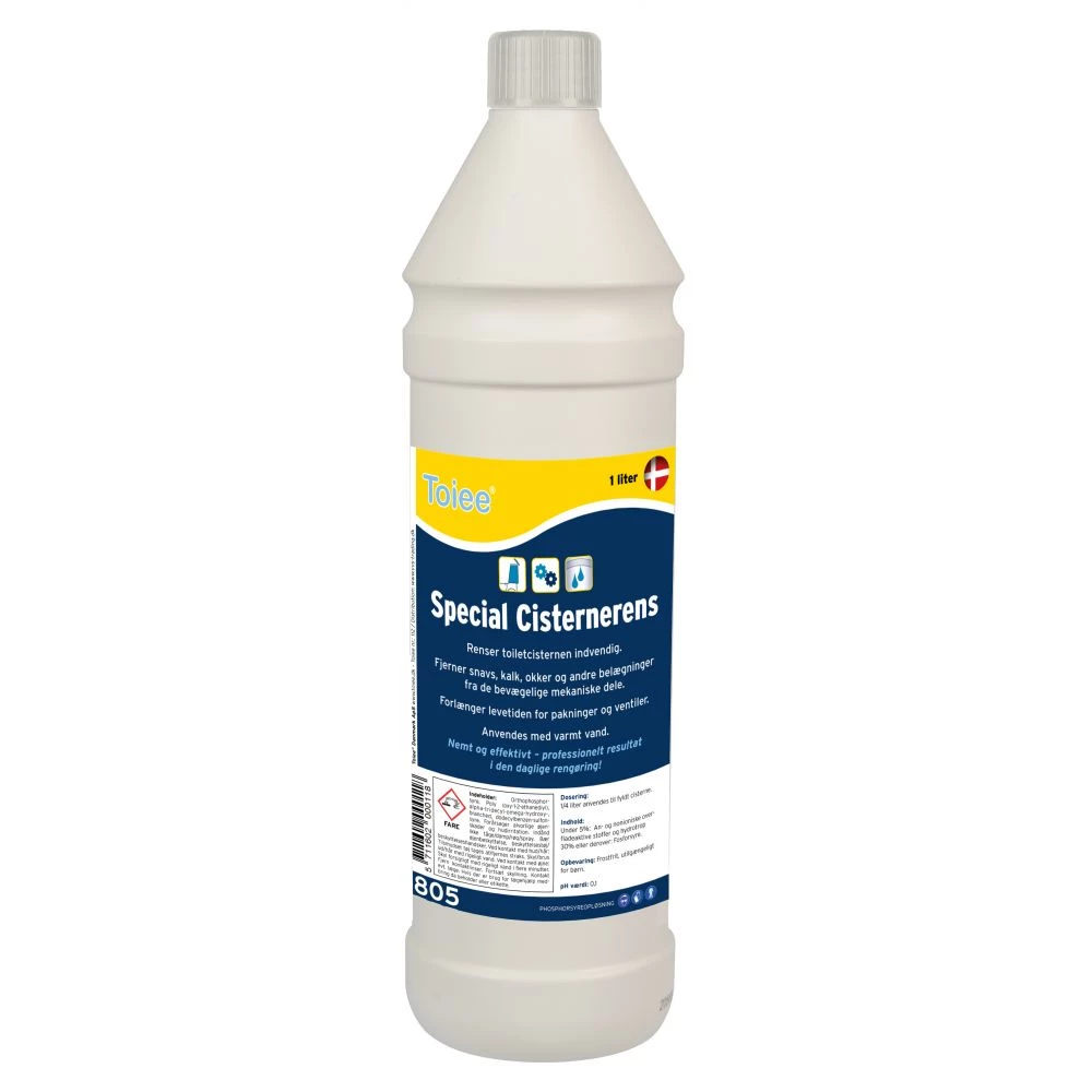 Fyld cisternen helt op med varmt vand fra vandhanen og Toiee® Special Cisternerens, lad det virke i ca. 30 minutter, hvorefter snavs og belægninger er opløst. Skyl cisternen ren med vand.
